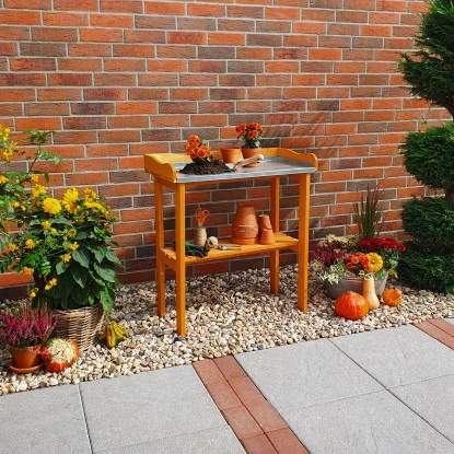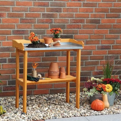 Dieser stabile Pflanztisch mit verzinkter Arbeitsfläche macht nicht nur in einem Gewächshaus eine gute Figur, sondern kommt auch auf einer Terrasse gut zur Geltung. Der Pflanztisch ist aus massivem Kiefernholz gefertigt und wetterfest imprägniert.