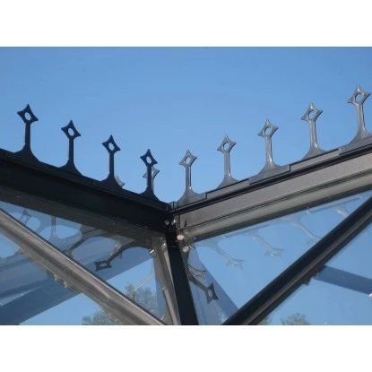 Die Vitavia Firstkrone Orangerie für Sirius in Schwarz aus PVC dient vorrangig als Abwehr zum Beispiel gegen Tauben. Zusätzlich hat die Firstkrone einen optisch ansprechenden Effekt und kann so als Verzierung genutzt werden. Sie kann mit den mitgelieferten Schrauben fixiert werden. Als Alternative kann auch Silikon (nicht im Lieferumfang enthalten) verwendet werden.