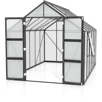 Ob mit kristallklarem Sicherheitsglas (ESG) oder UV-stabilen Hohlkammerplatten (Gartensaison Hohlkammerplatten) in 4 mm und 6 mm Stärke verglast. Die Scheiben erstrecken sich großflächig über die gesamte Höhe der Seitenfelder. Komplett mit dem 3mm starken, bruchstabilen Sicherheitsglas ausgestattet, fügt sich ihr Olymp elegant und wertig in ihren Garten ein – und bietet den Pflanzen viel Licht und fördert so das Wachstum. Andererseits ist gerade an sonnigen Tagen eine Schattierhilfe gefragt, um den Brennglaseffekt zu vermeiden. Hohlkammerplatten hingegen brechen das Licht durch ihre leicht milchige Oberfläche. Sie verbessern darüber hinaus die Isoliereigenschaften, sodass z.B. am Anfang und zum Ende der Gartensaison effizienter geheizt werden kann.